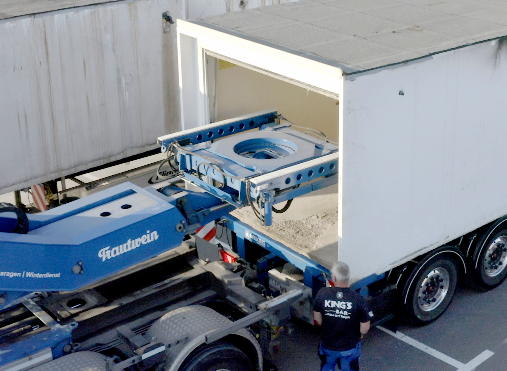 Wir verfügen über speziell entwickelte Garagenauflieger mit patentierter Ladungssicherung für den gleichzeitigen Transport von 2 Garagen (je 14 t). Ganz gleich um welches Garagenmodell welchen Herstellers es auch geht – wir transportieren deutschlandweit oder aber über die Grenzen hinaus. Der Transport, das Setzen und die Umsetzung von Gebrauchtgaragen sind bei uns in den besten Händen. Gerne übernimmt unser speziell geschultes Personal auch die Endmontage. Sowohl unsere Setzfahrzeuge als auch die Zubringer sind mit entsprechendem Equipment ausgestattet.